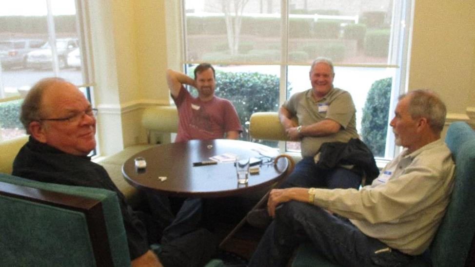 Then we took a serious non-stop dash east to Charlotte, North Carolina, to attend the British Motor Trade Association convention (and signed up to be a BMTA member in the process). I will make lots of notes here, because it is an interesting 4-day conference which most of you will never attend. Something like a car show without the cars, but substituting the best and most experienced people in the business of servicing British cars and parts and rebuilding sub-assemblies of all sorts. Guy from Moss Motors gets a little ticked at me on occasion for reporting bad parts, but I usually tell them what they need to do to fix the problems, so all in all they generally like me. Most of the rest of the member’s present end up buying parts from Moss (and other parts vendors), having to deal with the same issues, so those folks are mostly in the same boat rowing along with me, and we get along just fine. It was a little easier environment than I had anticipated. First evening here was an evening informal dinner meeting at the home of John and Ann Jones, owners of Na'Da Dawg Racing, good for initial introductions and meeting new friends.