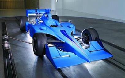 175-mph rolling road in 175-mph wind tunnel with car on top & mechanicals underneath.