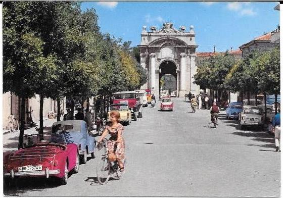 * The arch is obviously the main focus of the postcard but why would you use a photo with half a pedestrian on the right, and a lady on a bicycle in the foreground.