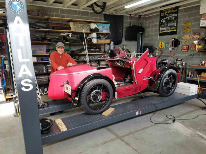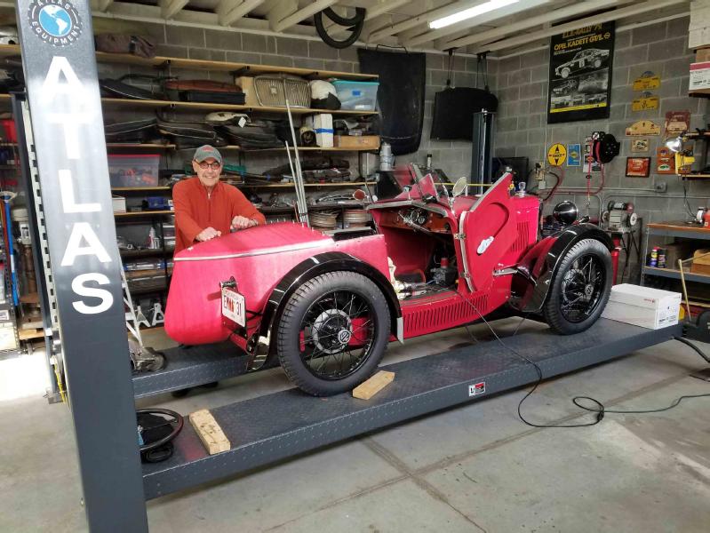 Please note in this post card taken in Decatur Georgia the large concrete block building devoted to the "Maintaining of the Marque". Front and center is a 1931 MG Magnette affectionately named Emma which can be seen on its license plate. The car is owned by a gentleman named Reinout Vogt who presides in a picture-like suburb of Atlanta, GA.