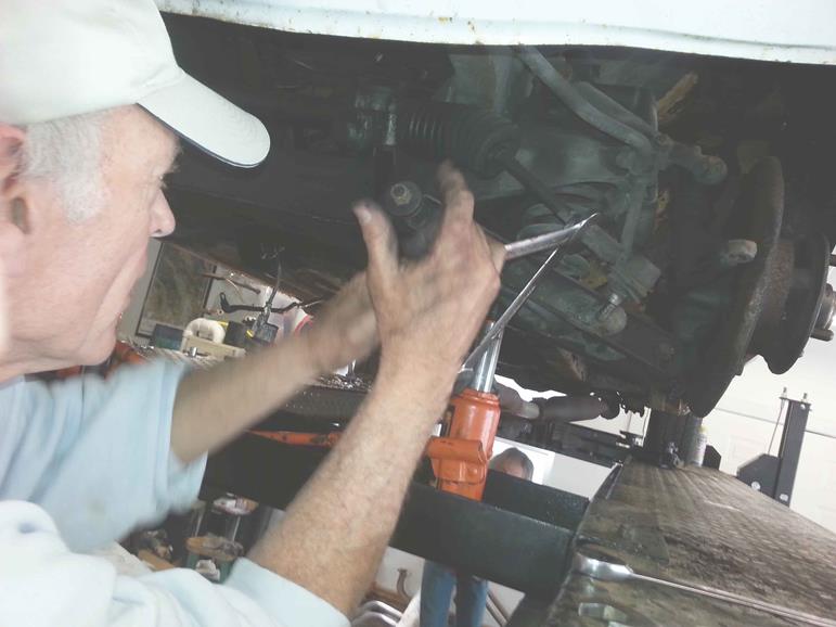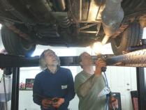 Steve Skegg, the club's technical program coordinator, held a tech session Saturday, April19th at his garage in Downers Grove. At 10:30AM, a group of 8 hearty individuals showed up to help and learn from Steve. Steve is getting a club member's 1972 MGB back on the road after a long sabbatical of in activity. The car had done a lot of road rallying and so it needs a good bit of work including suspension, steering, ignition, engine, transmission, etc....