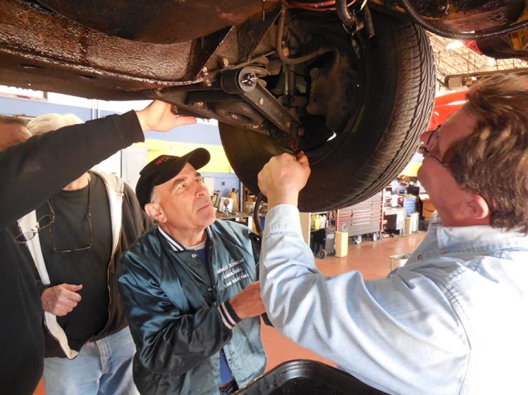 see your car from the bottom up. There were oil changes, brake system bleeding, wheel checks, engine tune-ups, and general under-body inspections performed. Although there were several ‘veterans’ on-site, we also had a few new members attending for the first time.