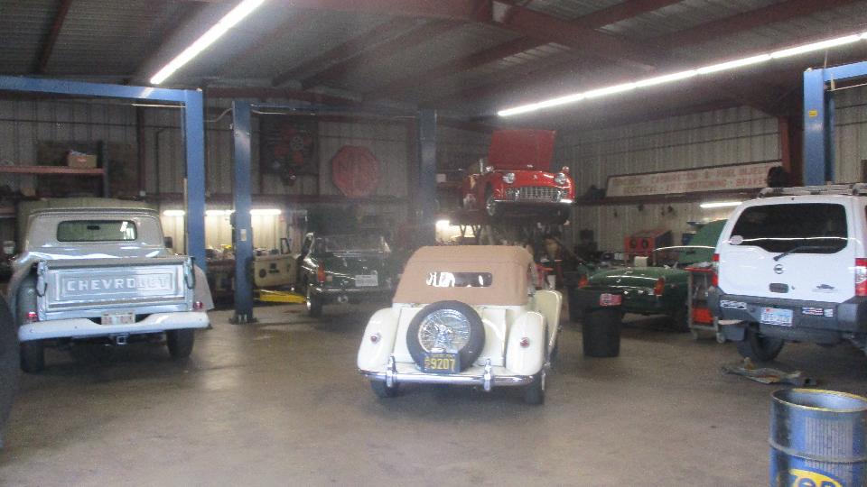 Another day, Graham Davies,Best of British in Austin, TX, closed and phone disconnected. Then Ron Shimek Auto Service in Austin, TX, here for decades and very busy. We found a MG TD survivor car and another TD in for minor mechanical work, a Lotus 7, and a few more cars in back waiting their turn.
