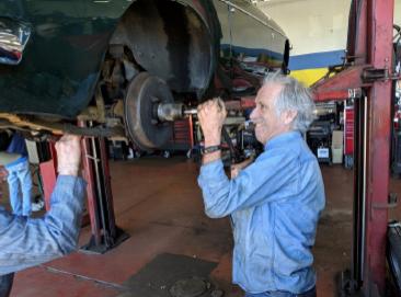 While Cowboy was conducting an under-carriage inspection tour on one of the cars on a lift, it was noted that there was excessive play (wobble) on the right rear wheel. Removing the wheel revealed that the bearing nut had not been torqued correctly. In fact it was just put on finger tight. Then we all got a lesson on what a pain in the…..axle…..it can be to remove the cotter key from the castellated nut while it’s inside the hub extension. The nut was then properly torqued and the car was good to go. After the wheel was refitted of course.