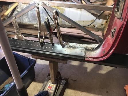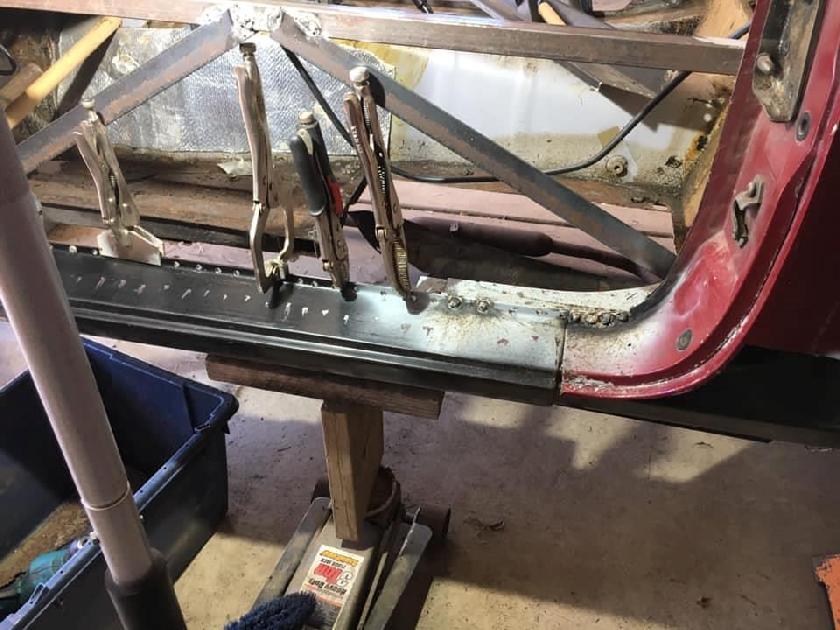 Pat noted at a club meeting that he wanted to hold a welding Tech Session at his house. The reason for the session was that Bonnie’s 1974 burgundy MGB was in need of some structural and sheet metal work and he had never attempted anything like this before.