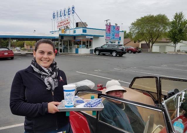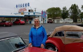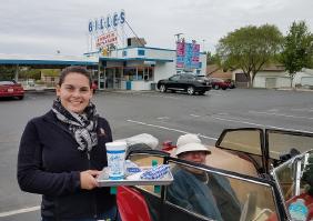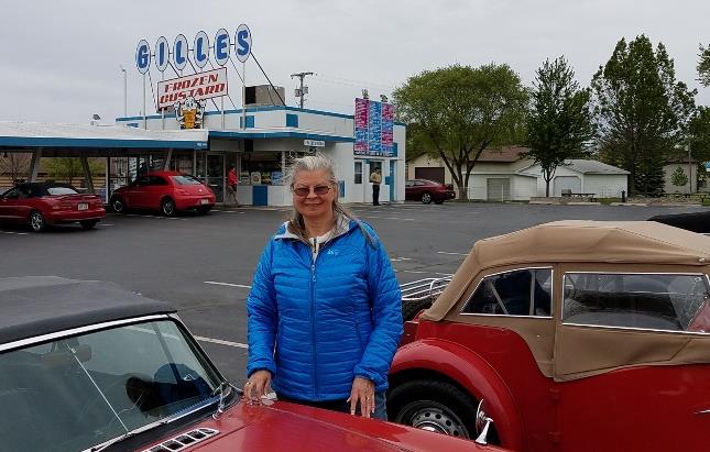 Penny L’Heureux in front of famous Gilles Frozen Custard Drive-in.