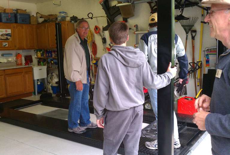 and consisted of many topics besides MGs. Victor and Penny L’Heureux unfortunately had to cancel, so we ended up going to Rob and Mary Bard’s place to see his garage, and attached house, but really to see his lift. It was a very nice drive on lift. Members, if you need to use a lift you know who to call.