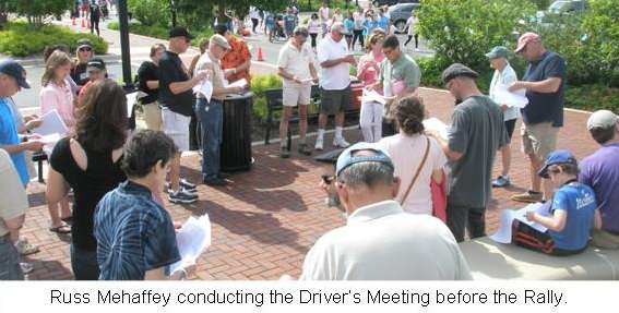 Despite the ominous forecast for developing thundershowers across the region, in fact the only “rain” that would fall on this parade was driving into the parking lot of the meeting place. The Arboretum Shopping Center at 59 and Higgins Rd, at 8:30 in the morning was unexpectedly packed with people and cars engaged in a charitable 5K run and walk. Throughout the sprawling complex, orange cones, pedestrians, and flocks of joggers everywhere clogging up the place as inadvertent autocross pylons for the gathering MG’s. When we were expecting it empty, who could know it would be like this? But we all managed to find each other and have the drivers’ meeting.