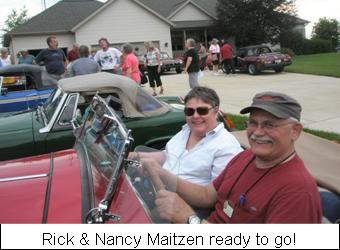 Bugs. That’s only when we got out of the cars. Nary a drop of rain ever hit our windshields during the Tour itself, although I was stalked by a gorgeous, massive thunderhead on the way home from dinner at Breitbach’s (Iowa’s oldest bar and restaurant) after the first full day. When the first drops hit my windshield, I pulled over to put the top up, and then the deluge hit. But it was over by the time I covered the three remaining miles to the Landings (our vintage, charming hotel in the antique button factory overlooking the buggy Mississippi).