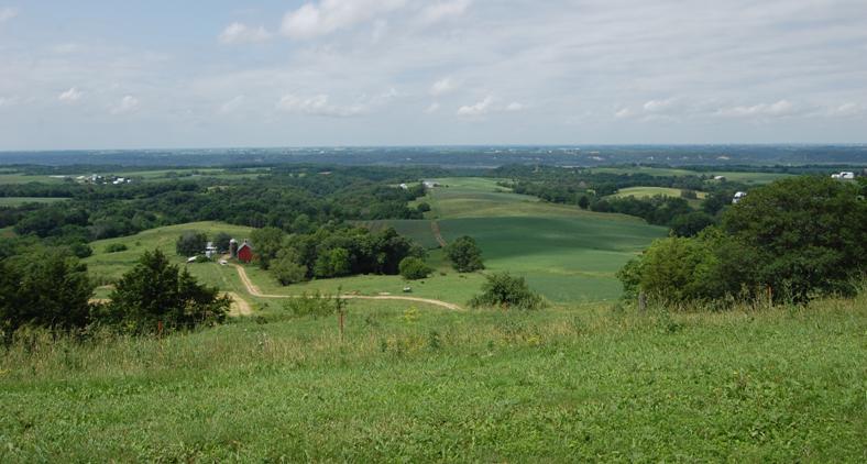 Perched on this glorious moraine ridge (which was likely pushed into place at this farthest extent of the glaciers), we stopped for a group photo overlooking the rolling bucolic splendor that is this part of Iowa. As bovine-dappled as the heavenly pastoral scene before us was, decorated here and there by scenic little farms in the distance, the sky was as dappled with spotted cows of thunderheads, each with its own personality, building and rolling along to their destinations eastward. You could see America for miles. It was glorious and we were all awe-struck and delighted.