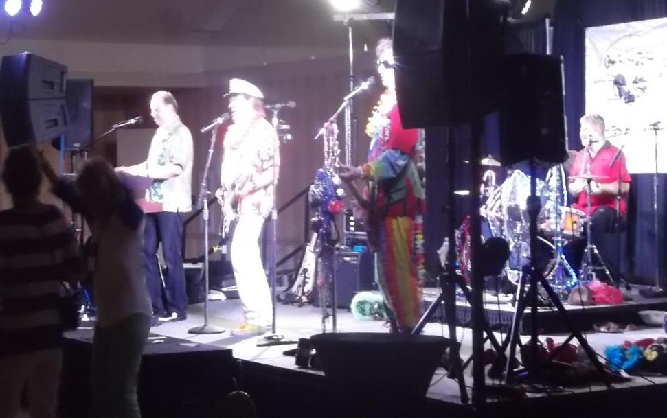 according to the threshold step. They had a great lunch followed by some Derby Pie. Some of us enjoyed Kentucky Bourbon Ale which is highly recommended. There were four separate MG Register banquets on Tuesday evening so they drove back to the hotel and prepared for the MGB register dinner. Roger and Shirley Goebbert were recognized for attending all of NAMGBR’s conventions. After dinner, about 1,000 members from all the registers came together for a performance by Captain Rat and the Blind Rivits from Champaign, IL. Lots of good music from the 50’s and 60’s.