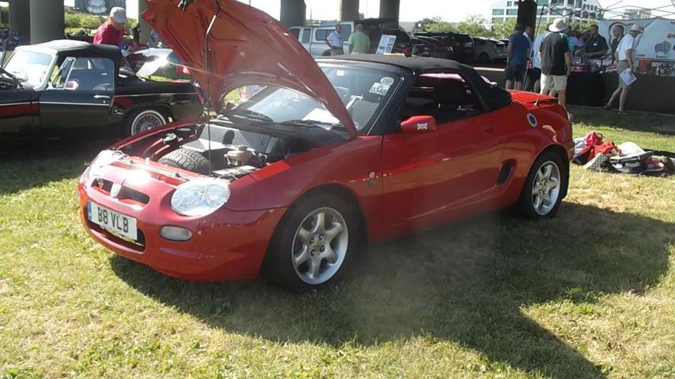 Thursday was the CAR SHOW! There were over 800 MG’s on the field. It was a very nice venue at Louisville’s Waterfront Park. There were a lot of Chicagoland MG cars on the field. The temperatures were in the upper 90’s, but there was a nice breeze coming off the river. There were a few special cars on display, including a few "modern" MGs like MG F-TF brought in from Canada, the MG 6R4 rally car (410 bhp all-wheel drive), and one MG XPower SV-S (430-hp). The restored MG EX-186 made another appearance here, as well as a 1961 MGA 1600-MK-II police car which took Best-Of-Show, register Chairman's choice. Five MGs from Australia traveling the continent west to east stopped long enough for this show.