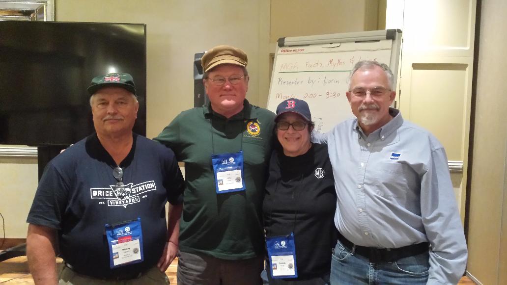 The intrepid four, from right to left, Kelvin Dodd of Moss Motors, Cecelia Bruce of Scaroboro Faire, John Twist of University Motors, and yours truly of MGAguru