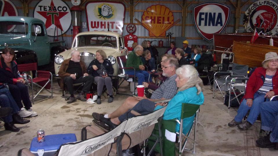 and ending at the farm of a club member near Ancaster, ON. Despite significant rain, they turned out 50 people for a club barbecue. Here we had the opportunity to ogle a collection of vintage cars and trucks and farm machinery while we stuffed ourselves silly and kicked tires and chatted about vintage British cars all afternoon.