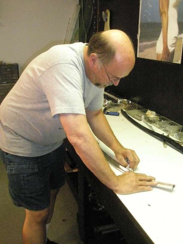We drew a diagram of the assembly on a sheet of paper and taped all of the screws down in respective order to remember what length screws go in which holes. That's when we discovered a couple of them were the wrong length. It was easy to pull the bottom rail off and leave the old packing rubber on the old glass. The bottom seal comes out of the "T" slot with a little tug, which of course is a whole lot easier then sliding a new one back in. Chuck the old broken glass outdoors to get it out of the way.