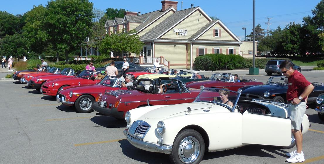 It was a beautiful morning – warm and clear – when seventeen cars left the Panera Bread parking lot in Lake Bluff and headed out to participate in this year’s “Lakes Tour”. Rallymaster Ray Hansen (and sidekick Sue) led most of the group in a “tour” format while a few hardy folks opted to go it alone in a more traditional rally format.