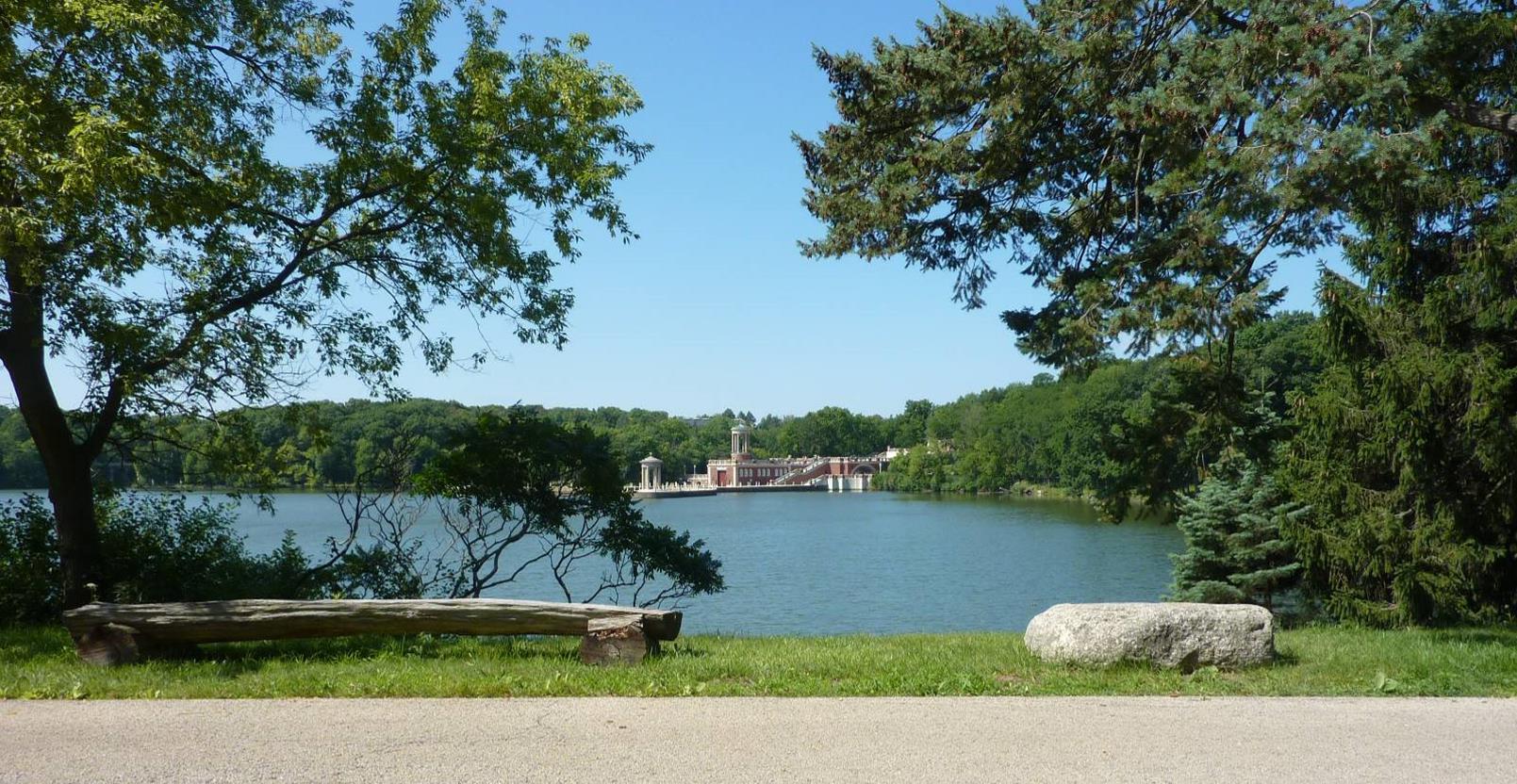 Alone the way, participants were treated to viewing some of the smaller and less well known lakes that dot the area. A special treat was a drive through the University of St. Mary of the Lake Catholic seminary in Mundelein, which covers more geography than you might think. Most of the cars stopped for a view of the lake on this property at the main pier before continuing on.