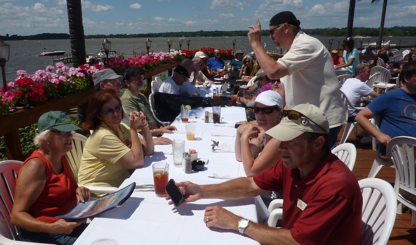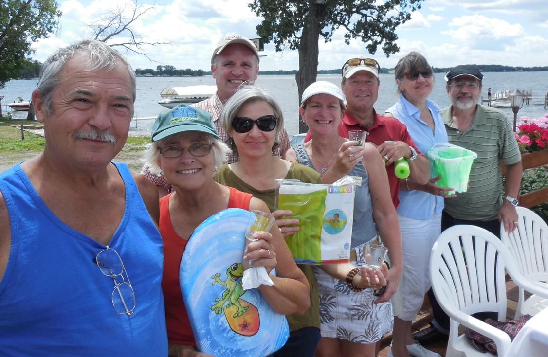 End point was Dockers Restaurant on Lake Pistakee in Fox Lake. The group had a light meal and lively conversation on the outdoor deck while Ray and Sue scored question sheets and announced the winners: Winners received whimsical beach toy prizes (i.e. “lake” toys, get it?) in addition the official club trophies.