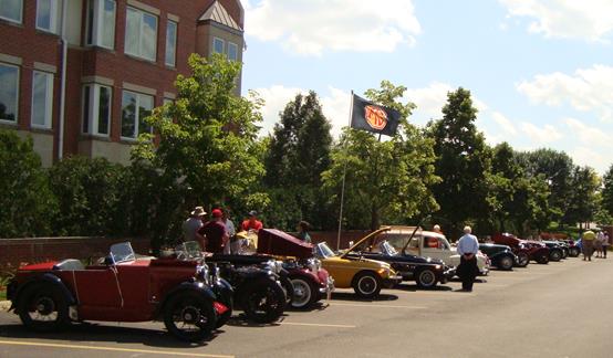 Fourteen cars were presented at Lake Forest Place for the benefit of the residents and the fourteen owners. A good selection of vehicles attended. There was an M Type, a PA Airline Coupe, 2 MGTCs, 5 MGTDs, 3 MGBs, one Midget and a Morris 1000 Traveller “Woody”.