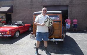 Our next stop was to a hidden-away establishment of Phil Derrig in an industrial area of Barrington to view his interesting studio of manufactured signs and his facility/museum. There wasn’t even a sign on the building indicating the business. Once inside the view of thousands of manufactured signs were shelved in an organization fashion. There were oil company signs, train memorabilia signs, car insignia signs, vintage advertisement signs; signs of almost anything imaginable. Of course there were MG signs and I had to have one for my own.