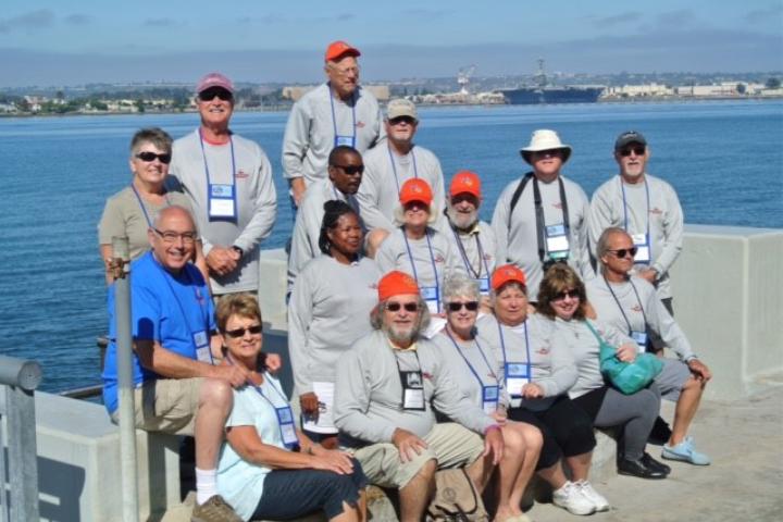 Greetings from San Diego, California! Roger and Shirley Gobbert (1st & 2nd row left side) pose with fellow cross-country travelers to attend the annual MG convention—MG 2017.