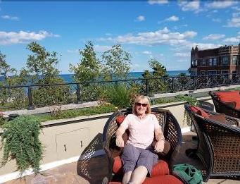 Sandy Wydra relaxing on the rooftop deck of Scott’s house.