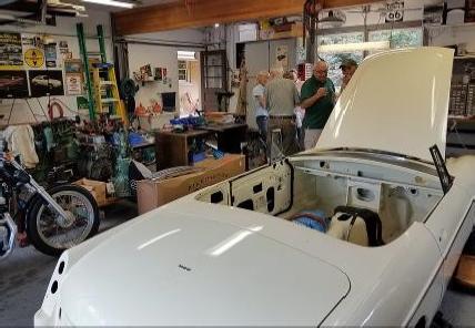 Ah, Summer – picnics, beaches and top-town cruises in the MG -- what could be better? Well, how about a garage tour and a picnic? Sounded good to me so off to Reinout Vogt’s house to take part in this year’s Ray’s Morris & MG Picnic. The added twist this year was to incorporate a mini garage tour prior to heading to Ray’s house in Gurnee for a picnic. To start, there was plenty of donuts and coffee to indulge while looking over the progress Reinout has made in restoring his 1968 MGC. The body paint job done last year still looks fantastic especially now that there is an assembled