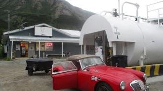 In Anchorage, we had a short visit with Del Rawlins, checking out his MGA restoration project, the car that used to belong to his father. Then two days for catch-up work. On Monday, we got the MGA into the Independence Day Parade in Anchorage along with half a dozen British cars from British Sports Cars Alaska local club, and lunch with some of the club members. Tuesday 7/5 was maintenance day for the MGA, repairing a broken bolt and a stripped thread to re-mount the LF shock absorber, doing oil changes for engine and gearbox and differential, lube job, reconnect exhaust pipe to manifold. Feeling particularly chuffed about the day's