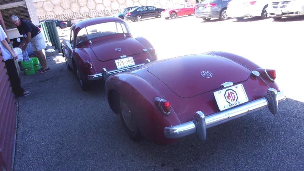After another overnight run we landed in Dubuque, Iowa by Wednesday p.m. to attend NAMGAR GT-44. They were reported to have 130 cars registered, but maybe they didn't all show up, as I counted only 103 at the Saturday car show. There were a few vendors selling car parts, tools and regalia, and some interesting tech sessions on History of the MGA, installation of the rubber rear seal for MGA and early MGB 3-main bearing engines, sports car racing over the years, rebuilding Armstrong hydraulic shock absorbers, and Story of the Devin. One or two of the tech sessions were cancelled when the presenters didn't show up. We managed to skip a number of tours and human-interest tourist trap type things, many having scheduling conflicts with the tech sessions.