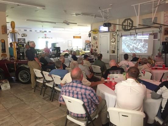 The weather improved a little bit and Emma was the only prewar MG that made it out to the Bowling Green headquarters and factory of Holley Performance Products. Emma was also the very last car to arrive there because we had to seek shelter, under large trees, a few times for the scattered showers. We saw the production of their famous 4-barrel carbs but photography was not allowed on most of the tour. The day ended back in Bill and Sarah’s 'museum’ garage for a Tom Wilson’s presentation about the restoration of his 11 prewar MGs, simultaneously (yes, you read that right, eleven MMMs, all at the same time). We saw how he purchased the cars, started the process in a commercial building, and later added enough space at his house to store the 11 frames, body parts, engines, gear boxes etc. etc. Hopefully we’ll get to hear progress reports at the next couple Annual MMM Meets as he estimates that he whole thing will take five years.