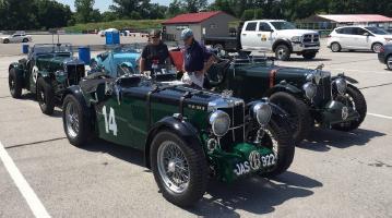 The following day was National Corvette Museum day (NCM). We first went to the NCM Motorsport Park were the fast cars could do a few hot laps on the 3 mile road course. Here are the three six-cylinder MGs ready before taking it to the track, this time with Reed Yates’ car in the front (with racing number 14 on the side)