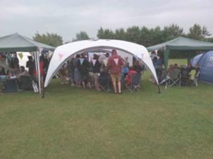 Friday night is sit and drink with the elders and I especially enjoy “Uncle John” who is 78, fit as fiddle and just a gas to sit and down a few with. John is a wild man! At midnight the campsite management came by and told us we had to be quiet so the first night’s party pretty much ended there. Saturday saw a local fair in Charllbury and the family feast which got underway about 5PM. The Stuffins army had erected several canopy-type shelters and a good thing too as it just poured down rain all evening. It was actually pretty funny because as I sat and again talked (well, “party” is a better word) with John and his wife Gill, I took in a scene of eating, a lot of drinking and laughing in almost a gale-force summer storm!! It was a hilarious scene as the weather didn’t dampen a thing!!!