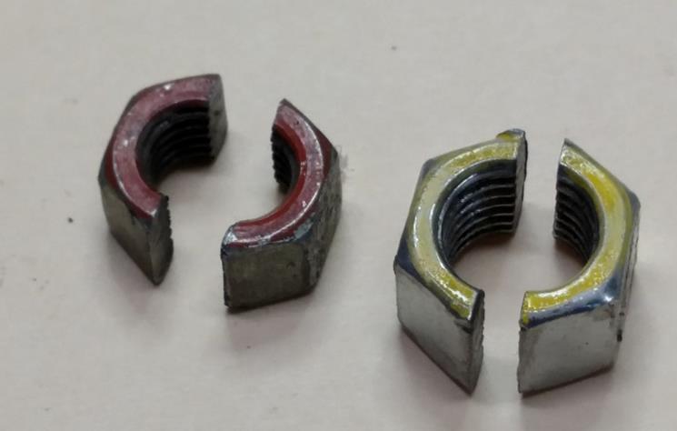 Cut nuts with a band saw. Color-code for easy use