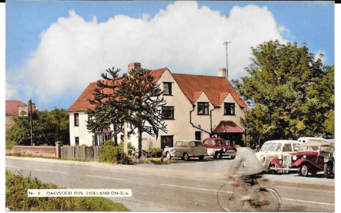 This postcard is from the Oakwood Inn on Holland on Sea in England. The MG TD has license plate LYS 579. The card is post-marked in August of 1969. The picture seems older, based on the cars on the parking of the inn. Although is impossible to see the brand and model of the car to the right of the TD, the diameter and width of its tyres (tires) and the shape of the wing (fender) suggest that it is probably older (but not a TC).