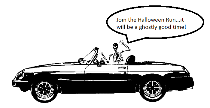Regalia and the Holidays It is not too early to start leaving hints for Christmas presents. Yes, I know that some of you want other "toys," but it is also appropriate to be clothes stylish. That is one of the nice things about having on-line Regalia, the clothes choices are in style and are of a very good quality. The selection also includes women's clothing. There is even a selection of youth and infant clothes. Pass this on to your spouse, children and even grandchildren. All you have to do is go to our Chicagoland MG web site and click on the "On Line Regalia" link to get to the “On Line Store" at "Fieldhouse" link and you are there. There are a variety of colors for each of the items of clothing that are available and you can match a variety of logo colors to go on your article of clothing. If you are willing to give them an e-mail address, you even get a 10% discount. So I recommend that you give it a try! The web site or ordering and viewing items is: www.fieldhouse.com/mg. You can always shop for yourself as well. That way you are guaranteed the perfect present. | | | 2nd Annual Halloween Run October 31, 2010 The 2nd Halloween Run will be held on Sunday October 31st, in the Northwest Suburbs. The Halloween Run does not include any competitive driving, there are no trick questions, and there will be no confusing instructions. You just follow the general directions and chase a few ghosts. There will be no need for special tuning, no helmets are required, no penalties will be assessed, and encyclopedic knowledge about MG will not be a competitive advantage. It will be that simple! And the additional benefit? No need for arguments or fist fights with your co-driver or navigator. We will meet at 10:00 AM in front of the Caribou Coffee in the Poplar Creek shopping center in Hoffman Estates at the Route 59/Sutton Road exit of I-90. If you come from the East, turn North on Route 59/Sutton Road at the light at the end of the exit ramp, then turn left on the entrance road for the mall area at the first traffic light on Route 59. (turn left at the end of the ramp and left at the second traffic light if you come on I-90 from the West). The Caribou Coffee is not immediately in the line of sight because it is hidden a little bit behind the Claim Jumper Restaurant. The Halloween Run starts at 10:30 AM. The Run is about 40 miles long and will take about 2 1/2 hours. We will finish at The Onion Pub and Brewery in Lake Barrington (on Pepper Road just North of the Northwest Highway) where we can have lunch and sample some of the Wild Onion Brewery beers. Check out the restaurant and the brewery www.onionpub.com We planned the finish of the rally early, 1:00 PM, so that you can skip lunch at the Onion if you need to be home for Trick or Treat with family or in your neighborhoods. To return back to I-90 from The Onion is about 10 miles, either on Route 14/Northwest Highway and Route 59/Sutton Road, or via Route 14/Northwest Highway and Barrington Road.