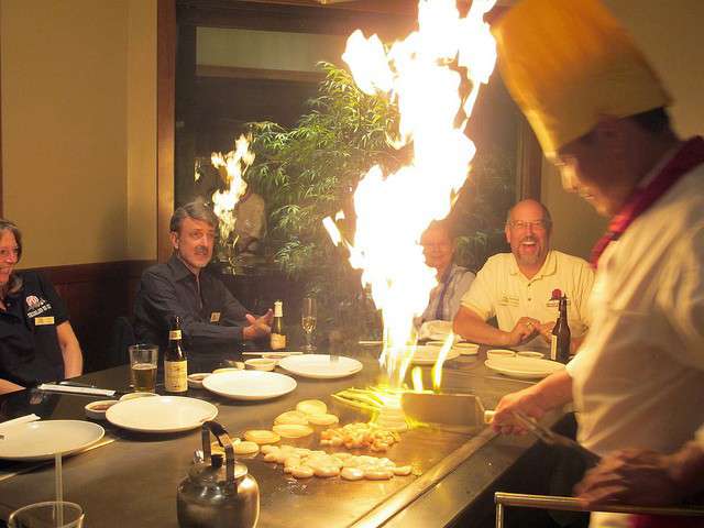 Most of the group arranged to stay in Rockford Friday night and attended the now traditional dinner at JMK Nippon Japa-nese Hibachi Steak-house where the group occupied 4 of their cooking station tables. A number of couples shared a dinner for two, and Bourbon pecan pie was among the dessert choices. As usual, there was an informal social gathering back at the hotel after dinner.