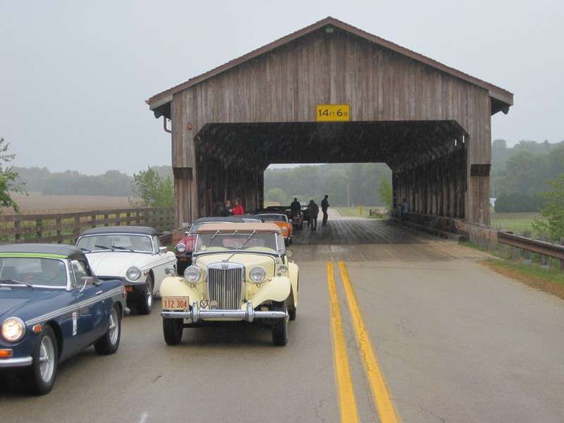 Sunday‘s drive under overcast skies started with a scenic drive along the Illinois side of the Mississippi. Next we returned to the fun of driving on the country roads of western Illinois. While on the way to our final stop at White Pines State Park light rain started to fall, and it continued for the rest
