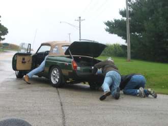 So I sit there in the rain and Ralph rushes off across the field .......staples scattering, (inside joke), to see if the farmer minded us fixing our car in his driveway.