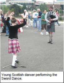 In addition to vendors, the spectators were treated to Scottish bagpipes and folk dance. The troop roved throughout the grounds performing various folk dances.