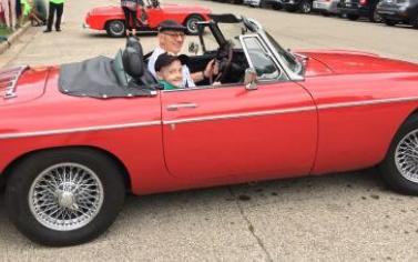 No question about it, this young man is enjoying the ride. Maybe he’ll be car guy and remembers Ray’s MGB and becomes a MG fan. But if he doesn’t, that’s fine too. We were not there to solicit membership. We’re there to give kids a smile on their face. Mission accomplished!