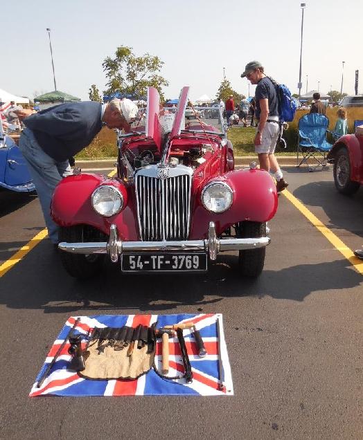We came to a goose-poop speckled vacant parking lot, and when it was over, all that was left were the ubiquitous smattering of oil spots everywhere. You could tell the Chicagoland British motor fleet had been there: 500 mostly vintage British cars of all marques, avid fans, great food, the bagpipers, and vendors of all sorts in a day long British Car Festival that has occurred every First Sunday after Labor Day for the past 31 years. This is not just a car show, it is a true festival!