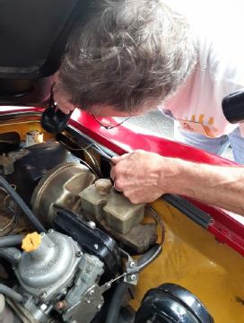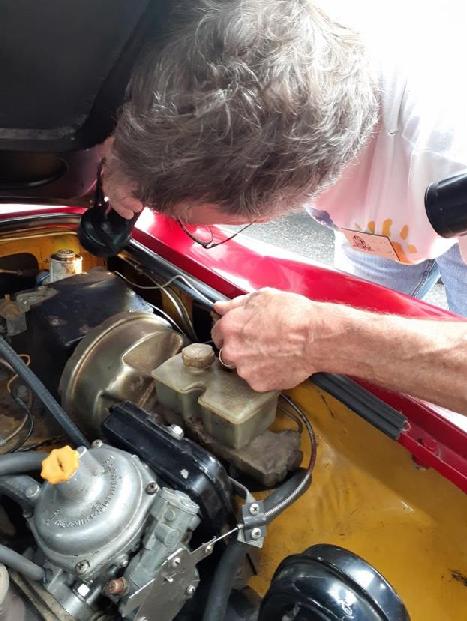 flawlessly except for one little hiccup when Hansen’s B developed a clutch fluid leak. As is always so much fun to watch, one or more members come to the rescue and magically has the needed part or fluid – you guys are amazing! Our little cars with all of the spare parts reminds me of the funny suitcases that floor lamps and people emerge from.
