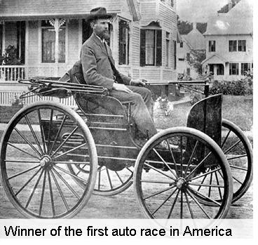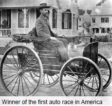 1895 – The first automobile race in America began, as six cars traveled from Jackson Park in Chicago to Waukegan, Illinois. Frank Dureyea was the winner, traveling at a blazing speed of 7-1/2 miles per hour! It took him 7 hours 53 minutes to make the trek. He won $2,000 for the effort.