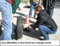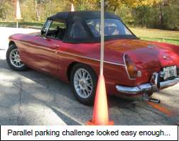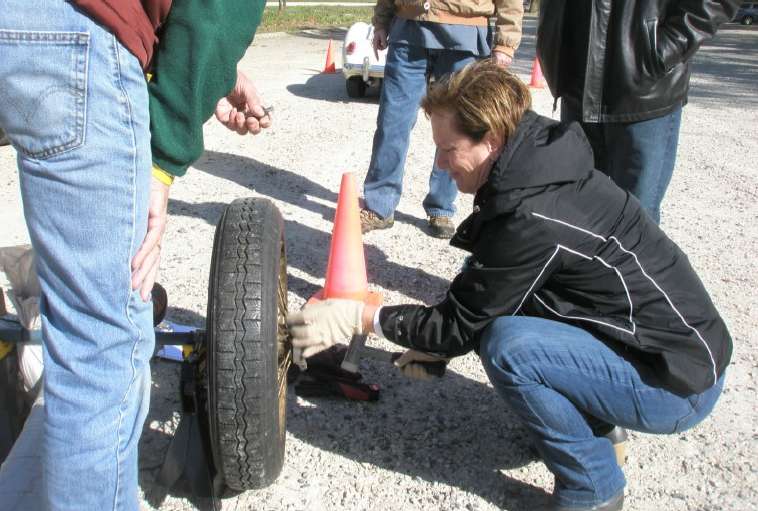 The rally cut through Cook and Lake Counties making six stops in forest preserves being presented with challenges reminiscent of a road rally to Monte Carlo. First stop the drivers were challenged with the task of locating the destination of the Monte Carlo rally on the map – where was this? (I thought Monte Carlo was a car…). Other challenging events in store for the participants were: changing a flat tire, navigating a narrow, covered bridge and parallel parking. Or course, having the necessary spare repair parts and tools to install them was a must.