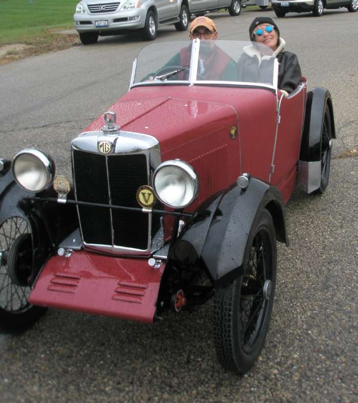 Reinout & Henneke Vogt cruising in their 1931 red MG M-Type ‘Emma’ on the Kettle Moraine Tour.