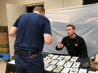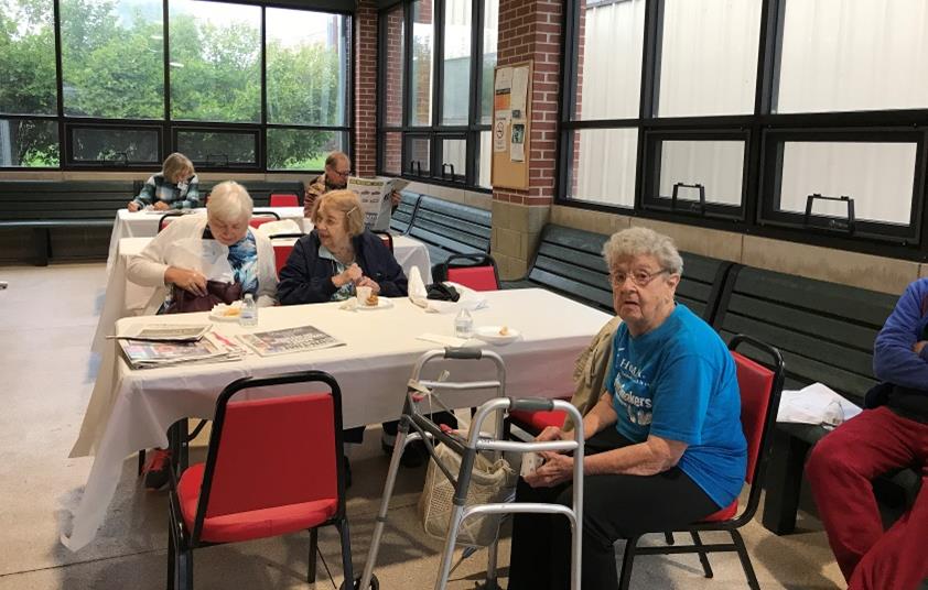 By 8:00 a.m., the starting time, we had about 10 cars lined up, and we decided to grab umbrellas to escort the drivers into the comfortable waiting area rather than register them outside. In the waiting area were safety information tables staffed by the DuPage County Sheriff’s Departmen, the Lisle Police Department, AARP Driver Safety Program, Triad, and of course, doughnuts, coffee and lots of other edibles for our seniors.