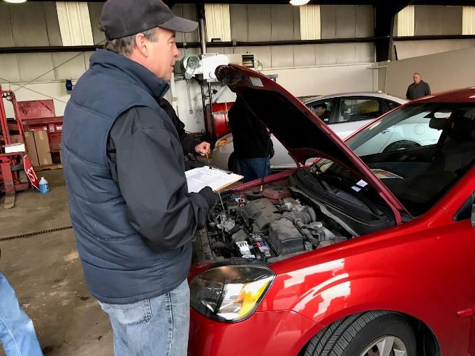 Tim Shafer begins another vehicle inspection