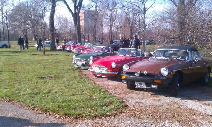 Chicagoland MG Club members line the field in Jackson Park for the annual ‘Cruise to the Rock’ event.
