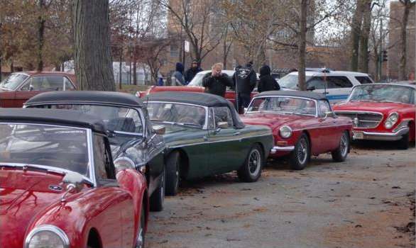 This year was bright but cool, and we had 14 club members attend: Doug Clark (68 MGC), Dino and Melissa Perez (MG RV8), Barney Gaylord (MGA), Mark Gannon (MGA), John Kearns (MGB LE), Dave Bralich and Dee Lettieri (MGB), Rich Meseruey and Sundy Mead (MGB LE), Reinout and Henneke Vogt, and Jake and Ann Snyder. As usual, we were interviewed by Bill Wildt for his Motorsports Unlimited program. He always mentions that the Chicagoland MG Club has supported the observance from the start. A number of other car groups, Corvettes in particular, were around but this year we left before the Toys for Tots motorcycles showed up, and many of us made our way to the usual Bridgeport restaurant, previously known as "Stages", but now "Harvey's". It was a memorable way to start Thanksgiving Day and we felt warmer after the event than the cool morning warranted.
