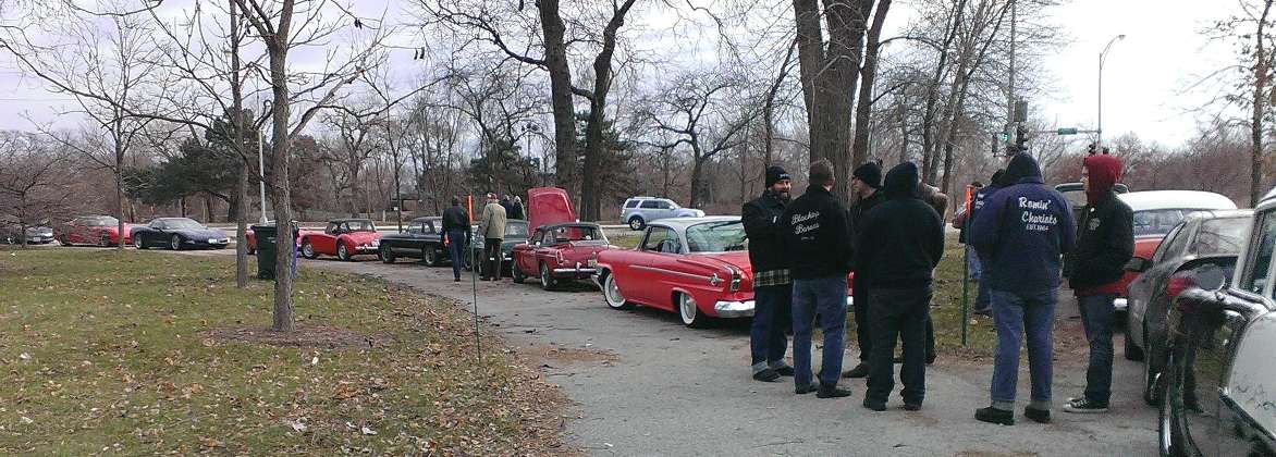 It's hard to believe that we have been doing this every Thanksgiving for nearly 20 years. Yes, 1995 marked the Centennial of the Times Herald Race of 1895, an event apparently little-known to many throughout Chicagoland. While the observance in 1995 received a certain amount of attention due to the efforts of the American Autosport Centennial, Inc., in years since, the commemoration has simply had a life of its own, and each year is just a little different. We all remember the year someone in a high-rise complex nearby complained to the CPD and they "asked" everyone to leave. During the following year, we unsuccessfully explored the possibility of getting the City's Office of Special Events to sponsor the gathering, but a better alternative has been to leave it without any formal organization, which might actually ruin the experience, and simply inform the Third District each Thanksgiving morning about what is going on. They have always been very cordial and have even been willing to provide us with a parking courtesy along eastbound Midway Pleasance by the "Rock", which is normally a no-parking zone.